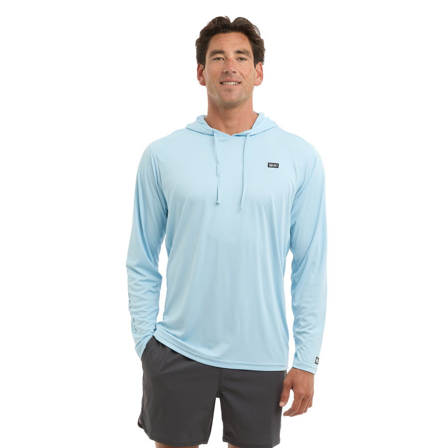 The Vaportek is our lightest fishing shirt ideal for sun protection and comfort. Featuring 50+ UV protection, ultralight quick dry recycled 4-way stretch fabric with PFAS free water & stain repellency, drawstring hood and strategic ventilation for airflow.