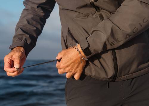The Hurricane jacket is the perfect combination of function and protection for cool wet days. Featuring 20K waterproof 3 layer shell with 20K breathability, PFAS free recycled nylon fabric with water & stain repellency, fleece lining, zip hand pockets, adjustable velcro cuffs, zip chest pocket, adjustable cinch waist and packable hood.