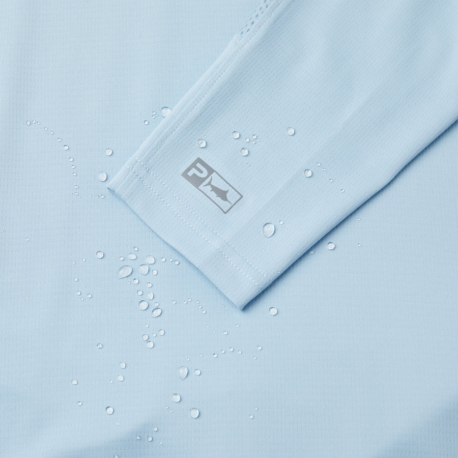 The Exo-Tech provides 360° protection for long days in the sun. Featuring 50+ UV protection, recycled 4-way stretch fabric with PFAS Free water & stain repellency, integrated face mask and strategic ventilation for airflow.