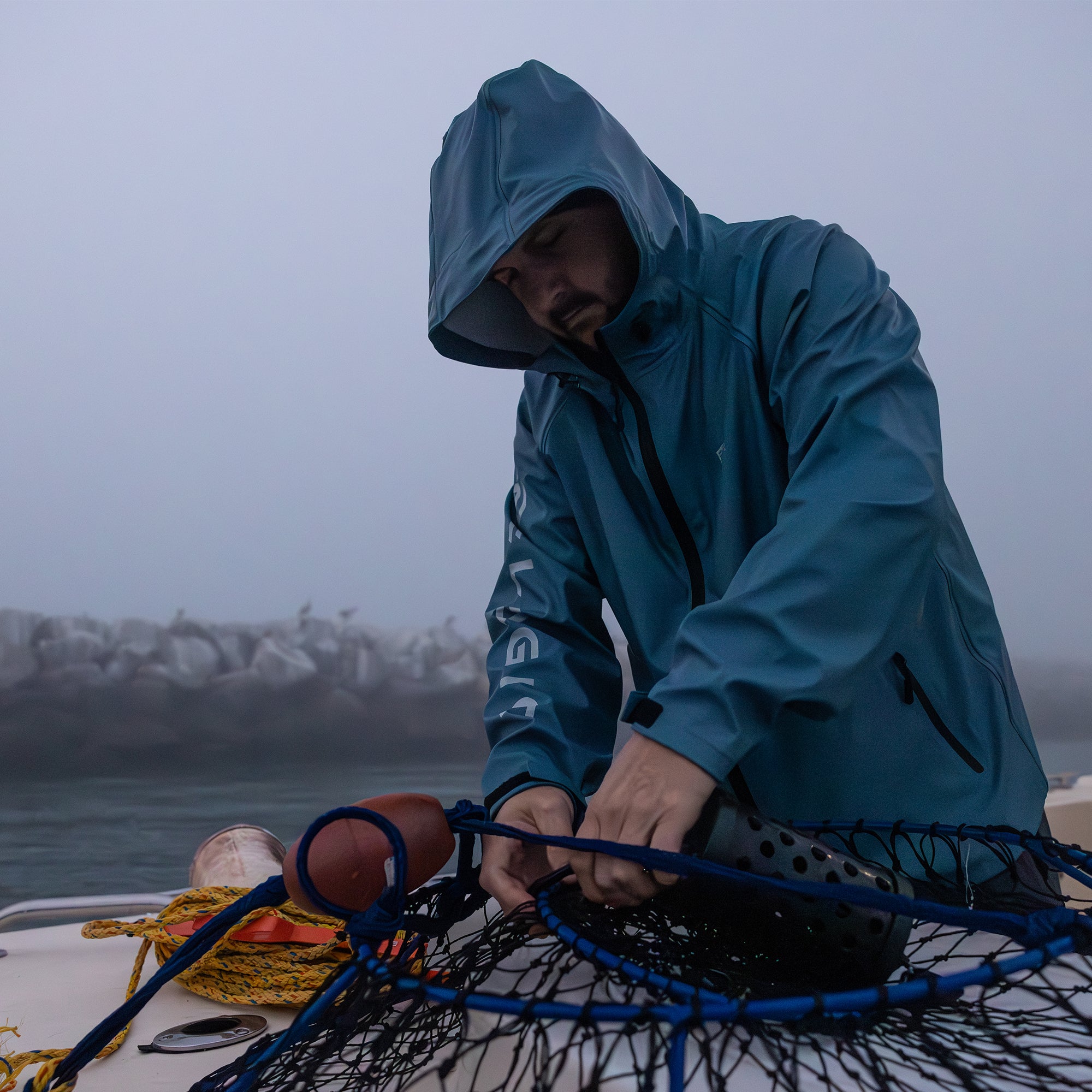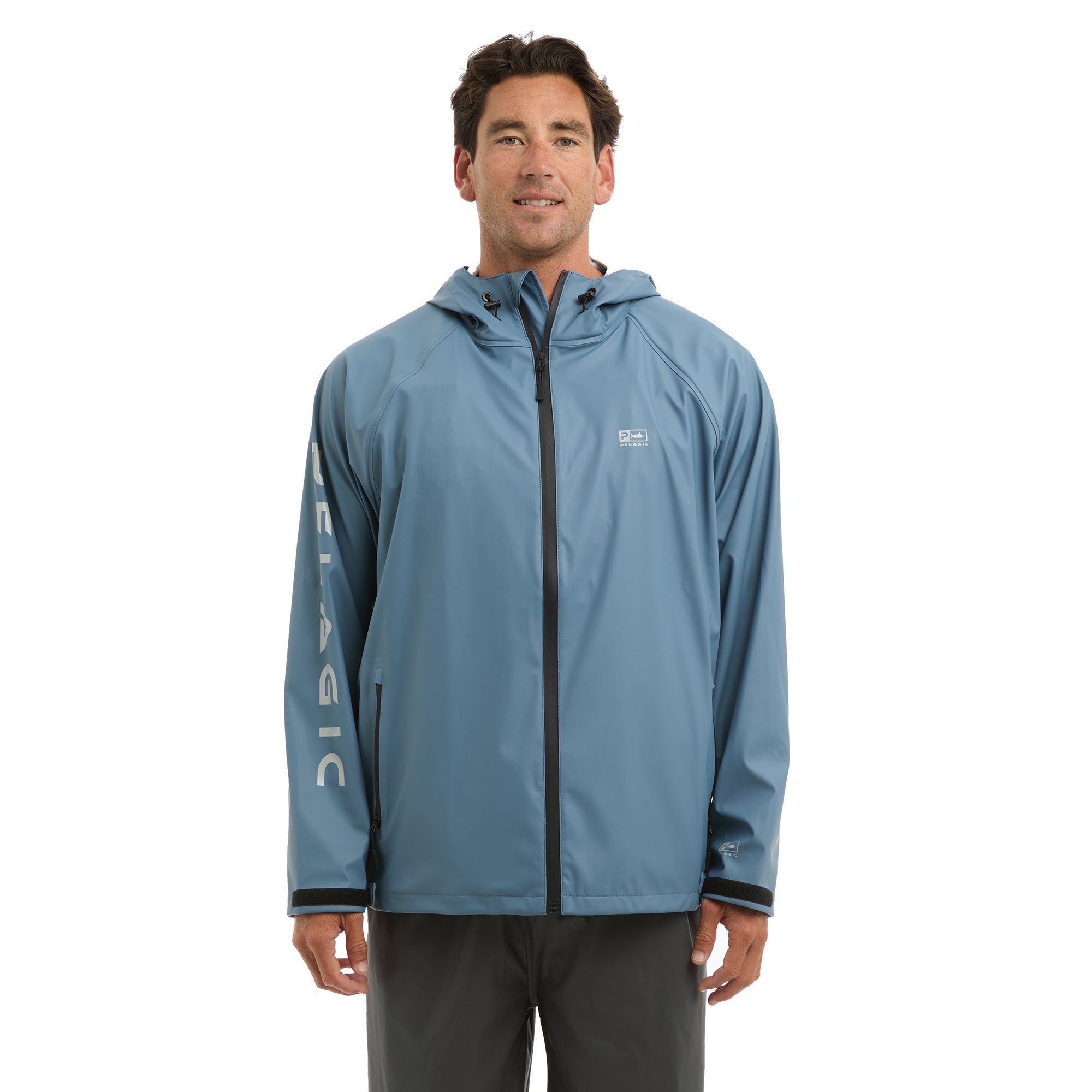 The Chubasco 2 layer PU shell jacket will keep you dry in any condition, ideal for warm weather squalls or layering in cool temperatures. Featuring welded seams, 4-way stretch recycled fabric, zippered hand pockets, adjustable cinch hood, and velcro cuffs.