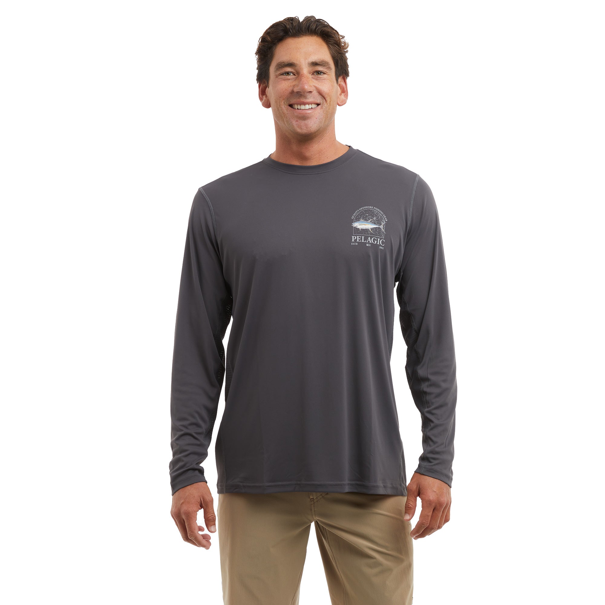 The Vaportek is our lightest fishing shirt ideal for sun protection and comfort. Featuring 50+ UV protection, ultralight quick dry recycled 4-way stretch fabric with PFAS free water & stain repellency and strategic ventilation for airflow.