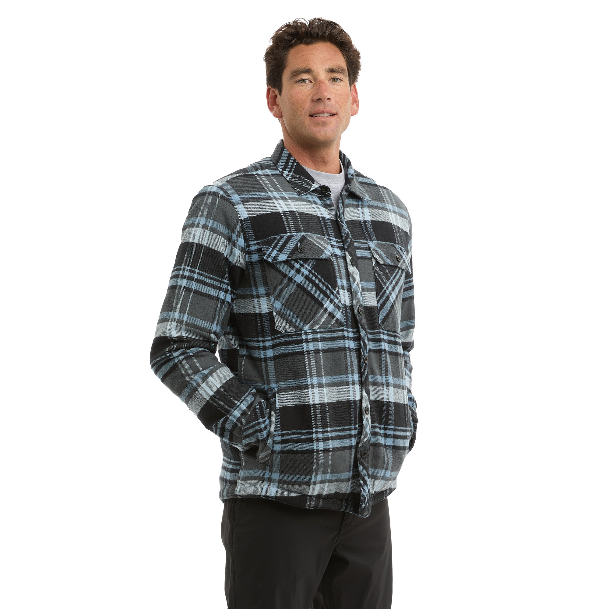 The Kodiak Sherpa lined flannel is the ultimate for comfort and warmth during long cold days. Featuring ultra soft brushed Organic Cotton lined with recycled Polyester sherpa, quilted taffeta lined sleeves and hand pockets.