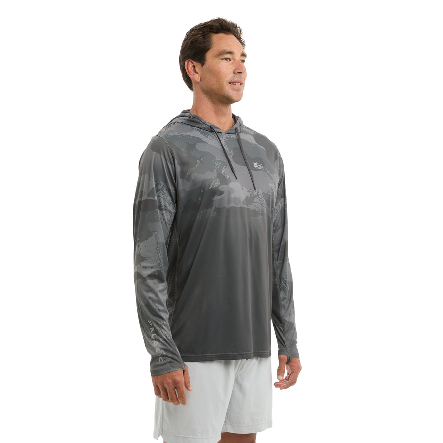 The Vaportek is our lightest fishing shirt ideal for sun protection and comfort. Featuring 50+ UV protection, ultralight quick dry recycled 4-way stretch fabric with PFAS free water & stain repellency, drawstring hood and strategic ventilation for airflow.
