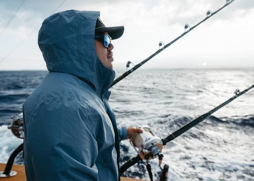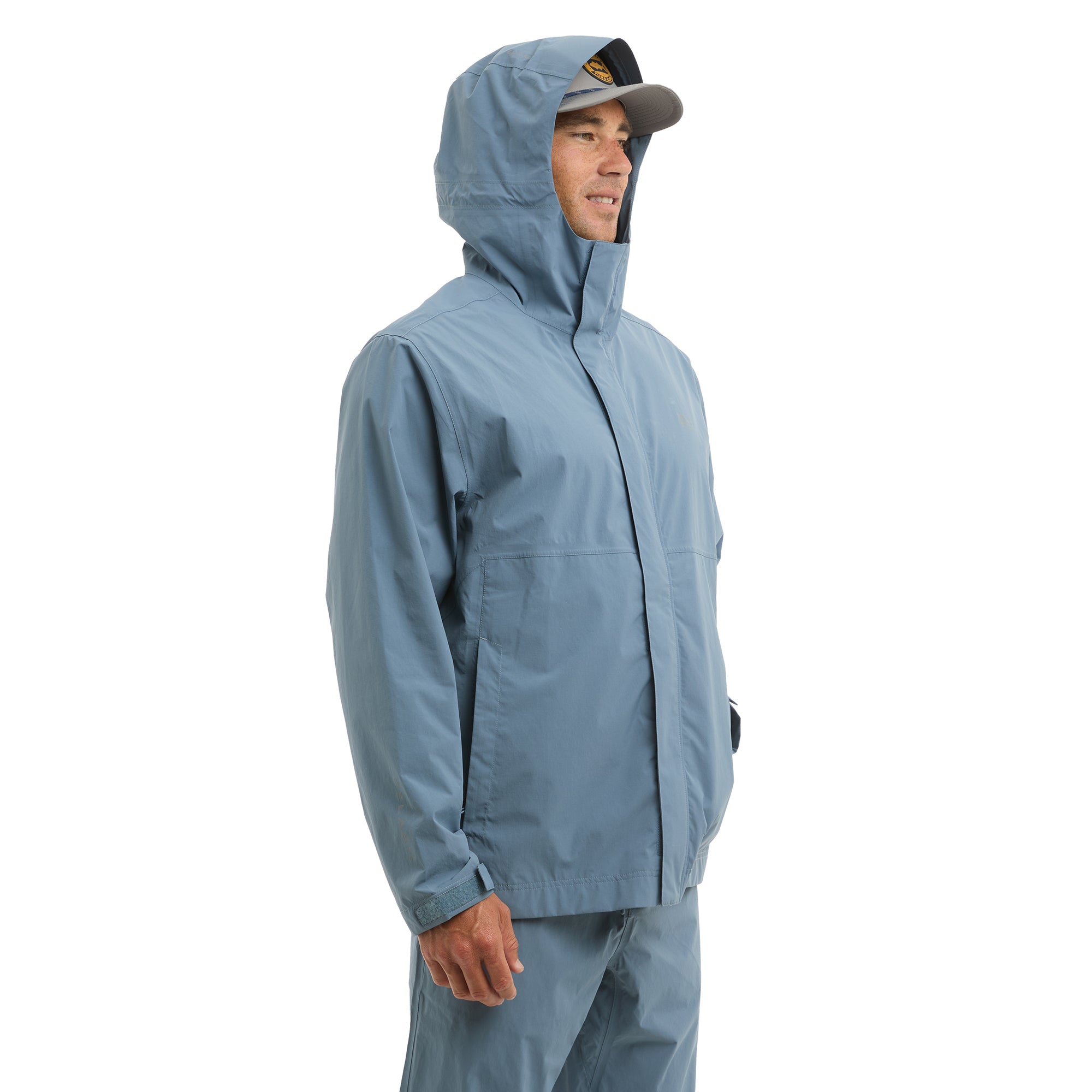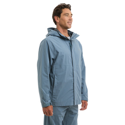 The Squall jacket is ideal for light to moderate rain. Featuring recycled nylon fabric, 2.5 Layer 10K/10K breathable shell, taped seems, water & stain repellency, zipper hand pockets, adjustable cinch hood and zippered packable pocket for easy stow away on a boat or in your bag.