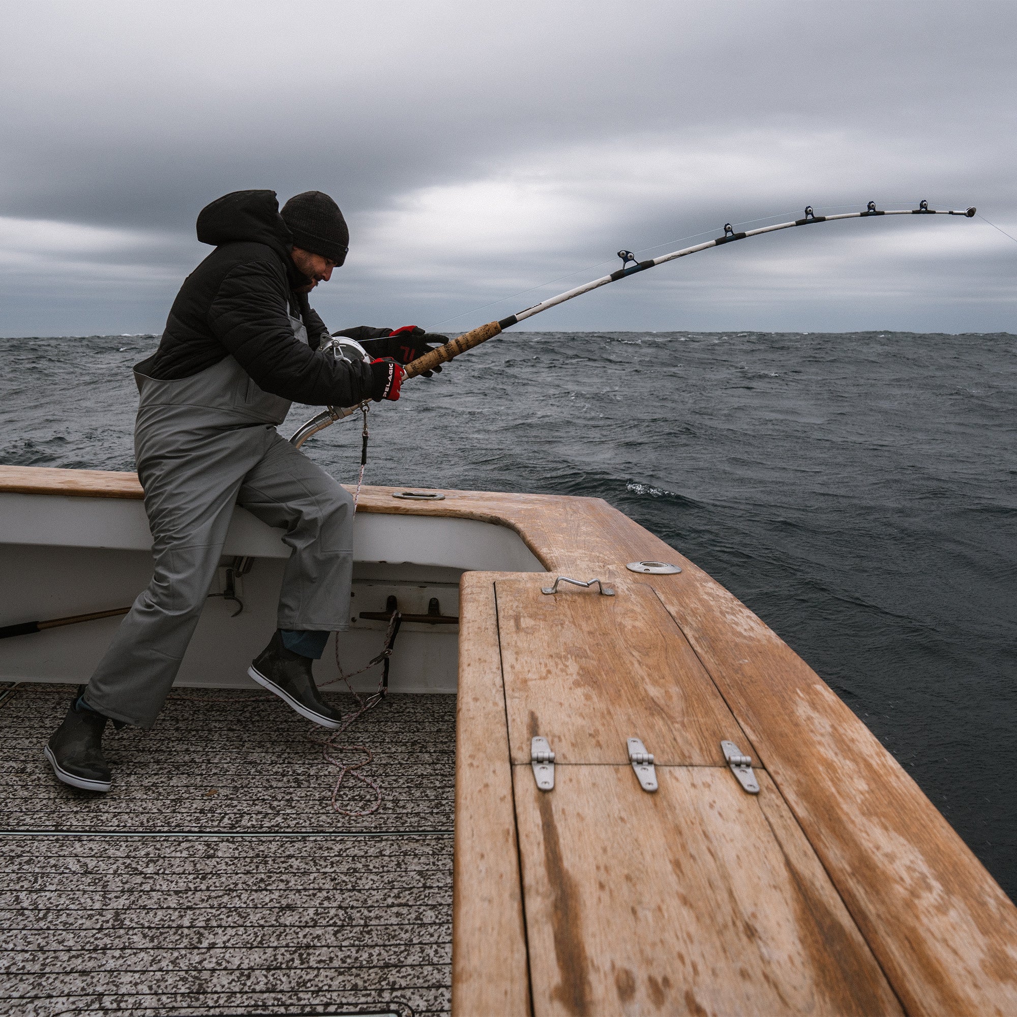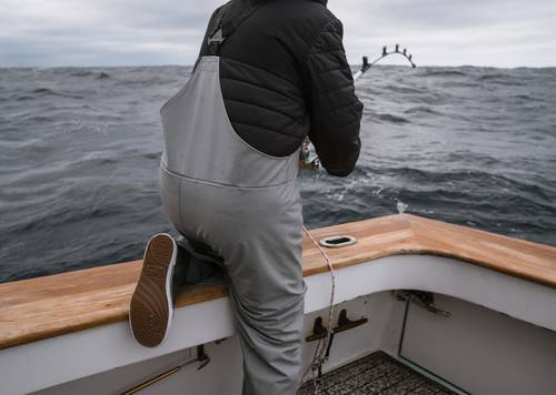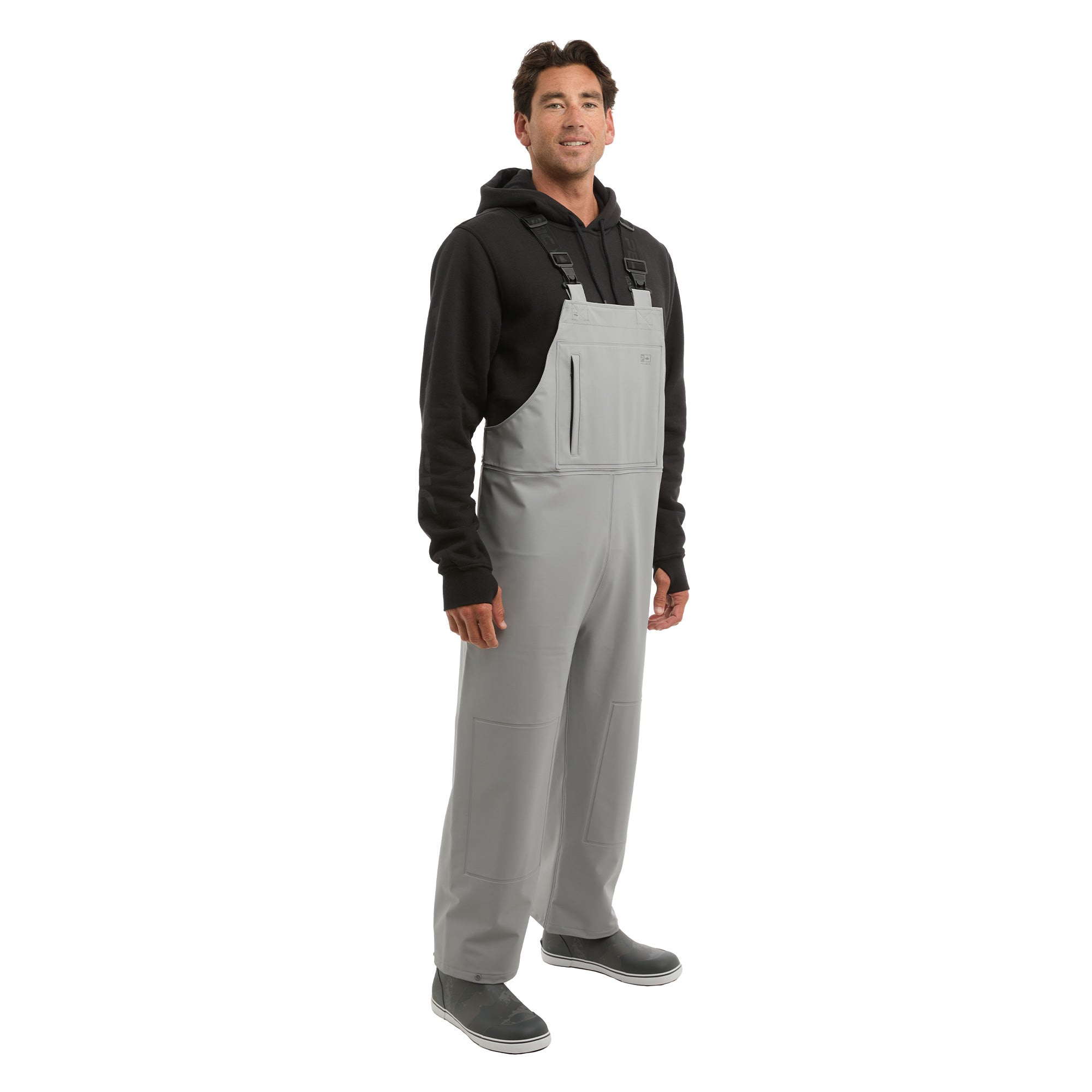 Welded knee panels reinforce durability and maintain a watertight seal when crouching, kneeling, or working on deck.