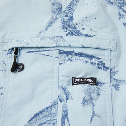 Featuring a “fluoro-friendly” spool cargo with line feeding exit on one leg, and a double-stacked tool & accessory pocket on the other, this short does it all.